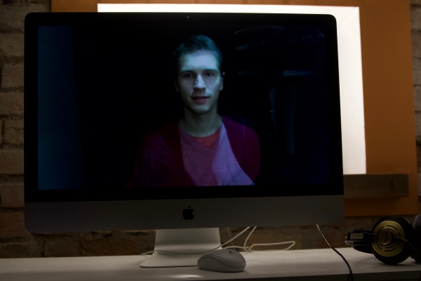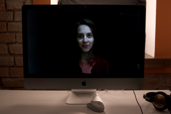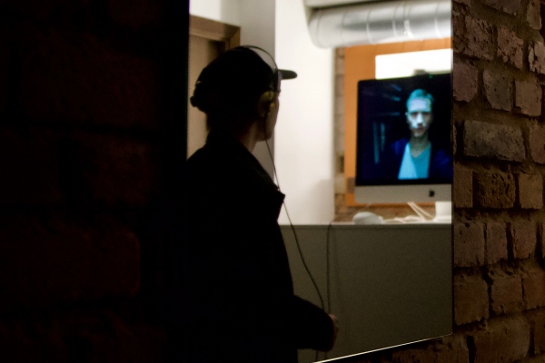 It uses video morphing and audio phasing techniques to create a mantra like effect, for video material that's filmed as seen from the installation's web camera. Additionally the video footage is mixed with short live webcam feeds to surprise and even more immerse the spectator.