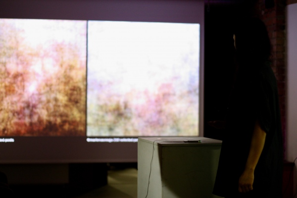 Every frame is made from 99 or 100 different photos, a software calculates an avarage visualisation in real time. Every second 10-30 photos are added to the set and the same count is removed - that creates a moving image.Ø was part of group exhibitions: "Liepājas mākslinieki Latvijas simtgadei", "Zinātnieku nakts 2018", "Polifonija"